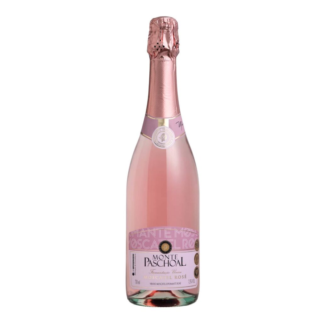 O Monte Paschoal Moscatel Rosé é um espumante brasileiro doce, leve e refrescante da Serra Gaúcha, elaborado pelo Método Asti com uvas Moscato. Apresenta coloração rosada cereja, aromas intensos de frutas vermelhas (morango, amora) e flores, com perlage (bolhas) abundante. Tem baixa graduação alcoólica e é ideal para sobremesas.default