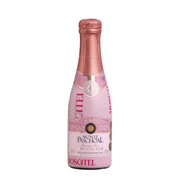 O Monte Paschoal Moscatel Rosé é um espumante brasileiro doce, leve e refrescante da Serra Gaúcha, elaborado pelo Método Asti com uvas Moscato. Apresenta coloração rosada cereja, aromas intensos de frutas vermelhas (morango, amora) e flores, com perlage (bolhas) abundante. Tem baixa graduação alcoólica e é ideal para sobremesas.